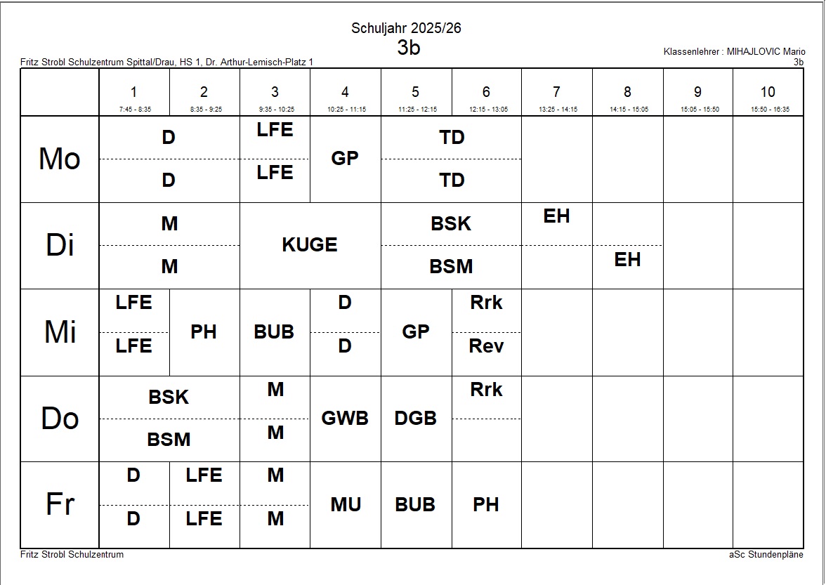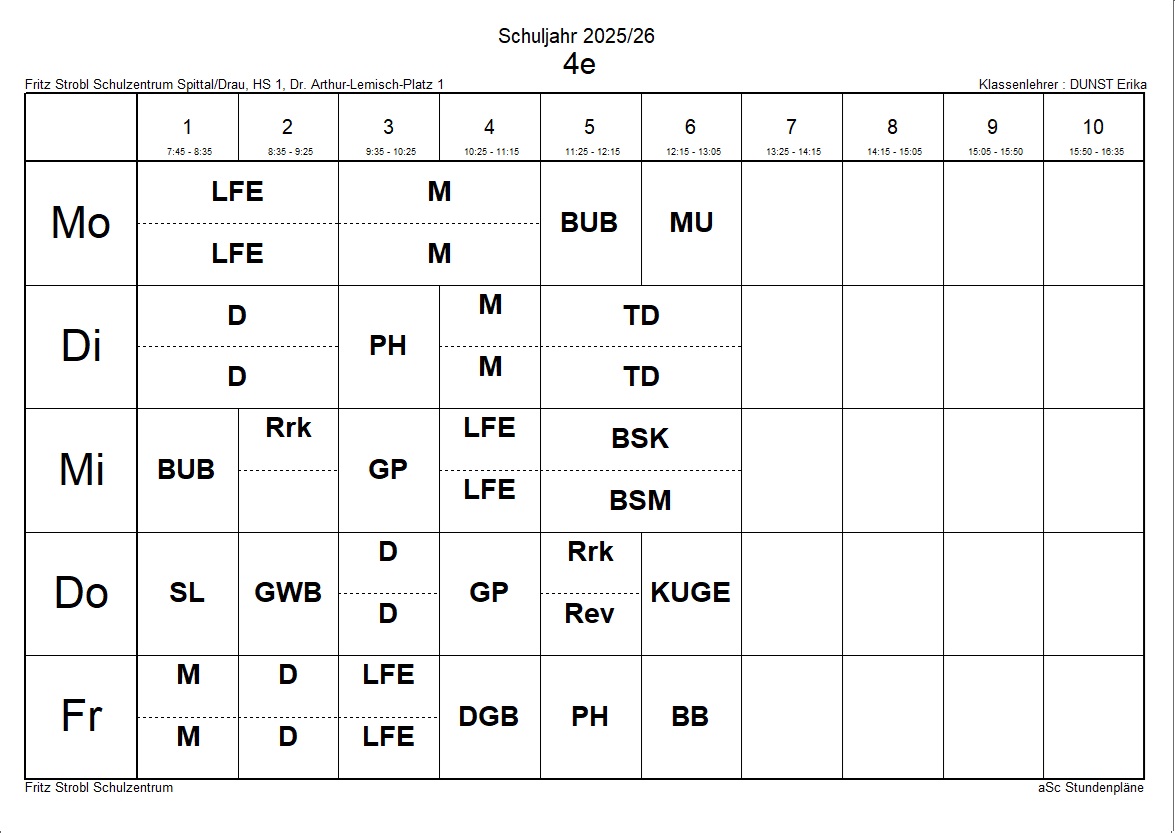 Stundenpläne der 1. KlassenStundenplan 1aStundenplan 1bStundenplan 1cStundenplan 1dStundenpläne der 2. KlassenStundenplan 2aStundenplan 2bStundenplan 2cStundenplan 2dStundenplan 2eStundenpläne der 3. KlassenStundenplan 3aStundenplan 3bStundenplan 3cStundenplan 3dStundenpläne der 4. KlassenStundenplan 4aStundenplan 4bStundenplan 4cStundenplan 4dStundenplan 4e